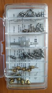 Набір ніпелів, фреони R12 та R134a, 5 видів. У комплекті універсальний ніпельний ключ та 50 ніпелів.