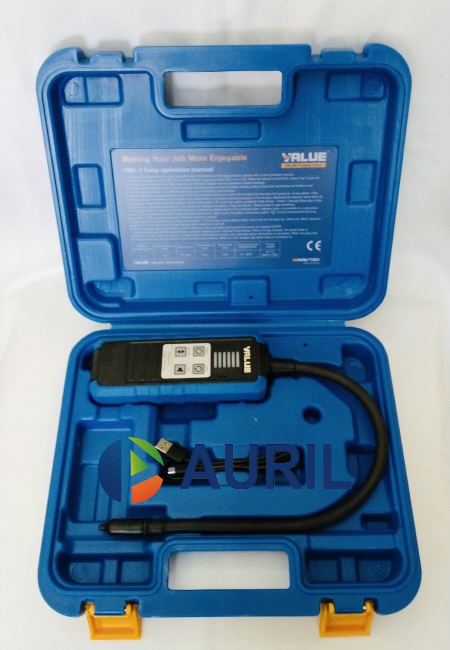 Течешукач фреону електронний Value VML-1 має вбудований літій-іонний акумулятор з автономним часом роботи до 8 годин, в комплект входить міні-USB зарядний провід, час до повної зарядки 4,5 години. Індикатором рівня зарядки служить кнопка включення та вимикання приладу «Battery», що змінює колір: зелений колір – повна зарядка; жовтий – середній рівень зарядки; червоний – низький рівень зарядки. Течешукач VML-1 оснащений напівпровідниковим тепловим датчиком витоків з чутливістю 3 г на рік, датчик (сенсор) - підходить для пошуку витоків холодоагентів - CFC; HCFC; HFC (R12, R22, R134a, R404, R407, R410, R502, R507, R32 та ін). Час прогрівання датчика та виходу в режим пошуку витоків – 46 секунд після увімкнення електроживлення. Термін експлуатації датчика витоку за нормальних умов використання - 1 рік. При необхідності заміни датчика течешукач фреону видає безперервний звуковий сигнал.