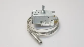 Термостат К-50 виготовлений із якісних матеріалів. Всередині трубки сильфона заповнений холодоагент, аналогічний тому, що знаходиться в холодильнику. Фізичні властивості цього газу такі, що його тиск дуже залежить від температури середовища, в якому він знаходиться. При зміні цього параметра він стискається або розширюється, впливаю на чутливу мембрану, яка механічно пов'язана з перемикаючими електро контактами реле холодильника. Ця трубка є датчиком , притискається до пластини випарника і контролює температурний режим холодильника.